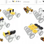 Nieziemski pojazd, składający się niekonwencjonalnie z 7 kół z czarnymi oponami. Przy poruszaniu się całej konstrukcji aż 19 kół zębatych napędza się nawzajem, powodując fantastyczny efekt odlotowej Machine. To już małe wyzwanie dla młodego konstruktora. Przekładając według instrukcji 4- 5 elementów można szybko jeden pojazd przeobrazić w całkiem inny np. Kosmiczny radar w pojazd badawczy.